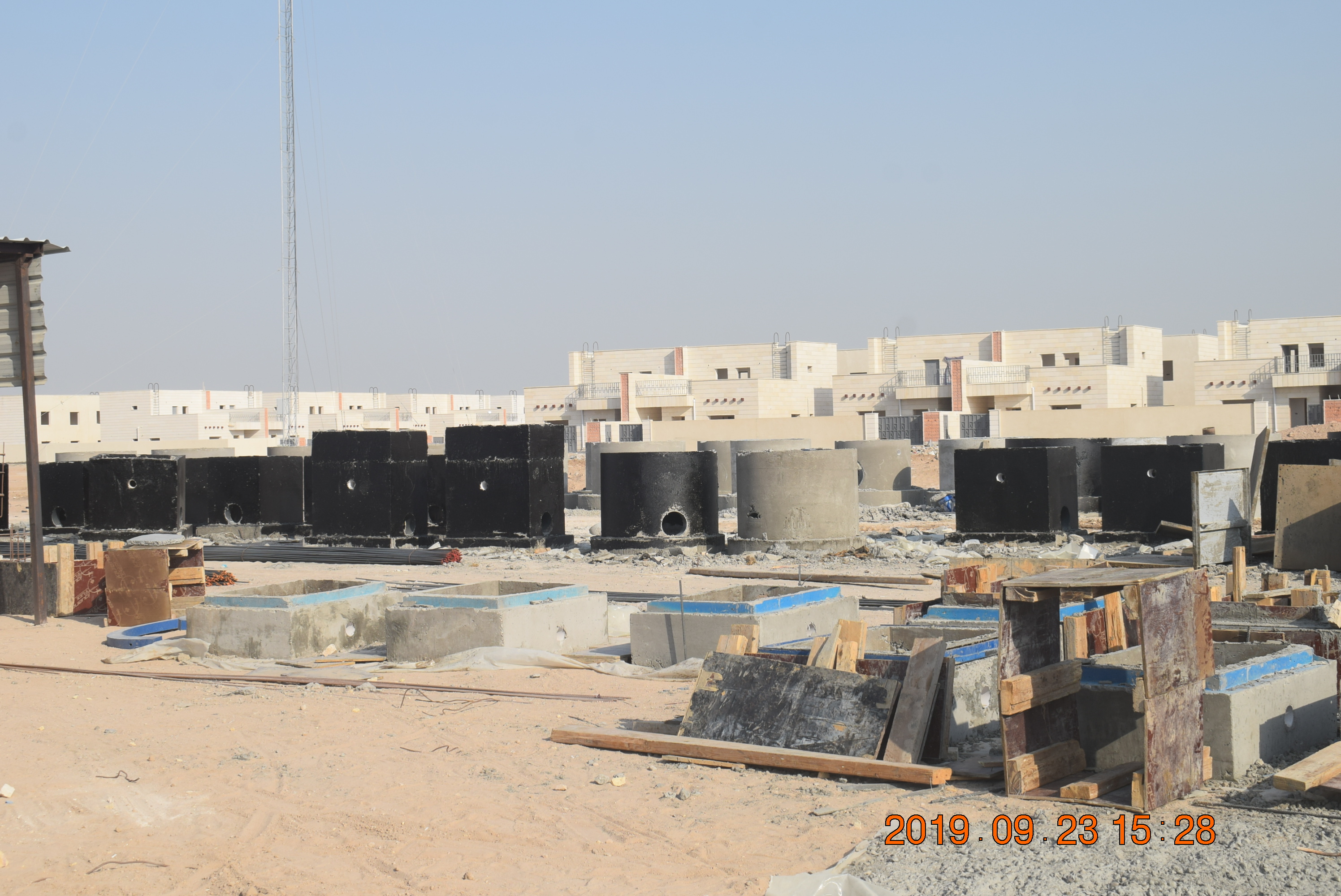 شبكة للمجاري الثقيلة وتتكون الشبكة من انابيب Upvc باقطار مختلفة تتراوح من 200 الى 400 مليمتر بطول كلي تقريبي 6000 متر مع المانهولات ومحطة رفع اضافة الى التوصيلات المنزلية.
