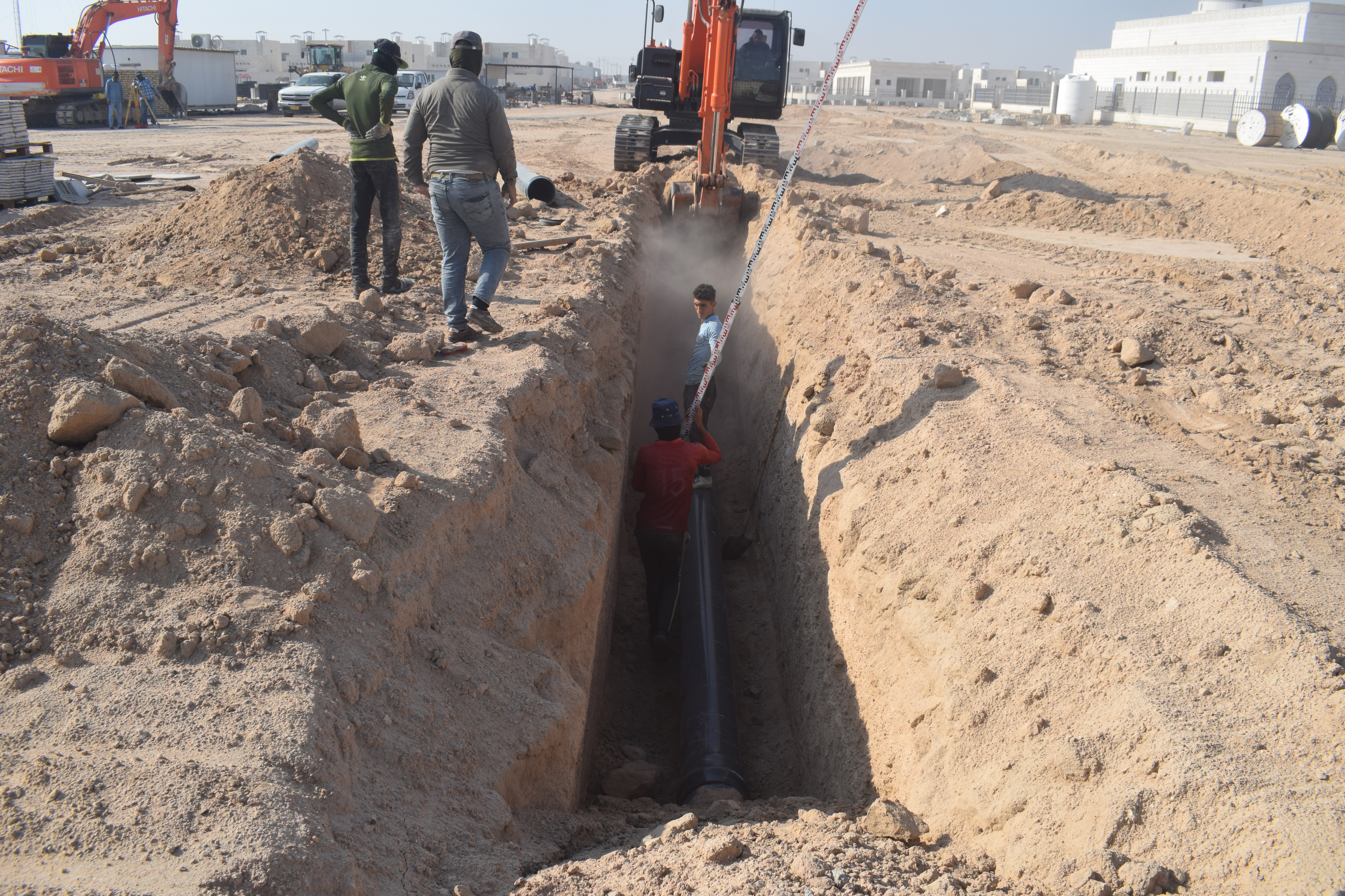 شبكة لمياه الشرب وتتكون الشبكة من انابيب HDPE باقطار مختلفة تتراوح من 160 الى 63 مليمتر بطول كلي تقريبي 4000 متر مع المانهولات وخزانات من الحديد المغلون بسعة 1500 متر مكعب من الحديد المغلون المضغوط اضافة الى التوصيلات المنزلية وتوفير عدد مناسب من فوهات اطفاء الحريق.